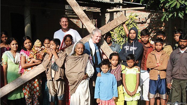É impossível não ver Lindsay Hamon andando pela rua, porque o cuidador de 61 anos carrega no ombro uma cruz que pesa 25 kg.