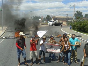 Famílias atearam fogo em pedaços de madeira epenus para bloquear avenida.