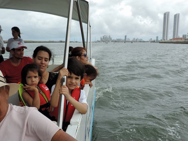 Os irmãos Artur e Sophia curtiram o passeio com a tia, Gabriela Bravo (Foto: Débora Soares/G1)Gabriela Bravo, tia de Artur e Sophia Pereira, de 6 e 4 anos, respectivamente, acompanhou os sobrinhos no passeio. "Só ia levá-los ao Parque de Esculturas, nos barquinhos. Mas quando cheguei aqui, vi que ia ter esse programa", explicou. Durante o passeio, os dois não paravam quietos, olhando para todos os lados. Artur disse gostar porque achava o mar bonito, mas Sophia tentou corrigi-lo, dizendo que o passeio foi no rio. Nenhum dos dois estava certo ou errado, já que o catamarã ficou apenas no estuário, ponto de encontro entre diversos dos rios que cortam o Recife e o Oceano Atlântico.