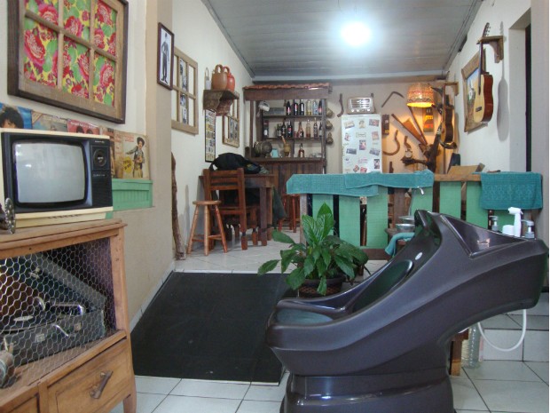 Decoração da barbearia é feita com objetos históricos, que lembram a vida no campo (Foto: Rodrigo Saviani/G1)Decoração da barbearia é feita com objetos históricos, que lembram a vida no campo (Foto: Rodrigo Saviani/G1)
