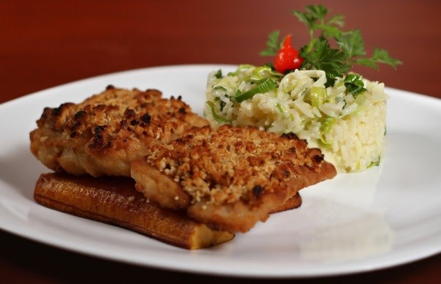 Prato de robalo com crosta de castanhas é oferecido no restaurante Contemporane durante a Restaurant Week em Goiânia, Goiás (Foto: Bruno Henrique/Divulgação)Robalo com crosta de castanhas é prato do restaurante Contemporane (Foto: Bruno Henrique/Divulgação)