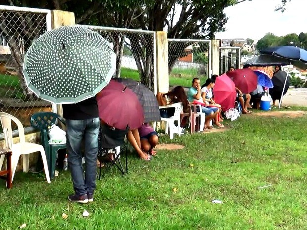 Pais aguardam mais de 24 horas em filas em frente de escola (Foto: Reprodução/TV Cruzeiro do Sul)“Vim em busca de uma vaga para minha irmã, ela não pode vir porque estava doente. Eu já estudo aqui e estou na fila em busca de uma oportunidade também para ela, pois considero uma escola de qualidade. Estou aqui desde ontem, montei a barraca para ficar protegido do sol e da chuva”, conta.