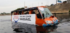 Esta é a 4ª edição da ação Por uma Cidade Navegável. Na 1ª e 2ª edição, em setembro de 2011 e setembro de 2012 respectivamente, o projeto foi realizado com a proposta de uma disputa entre uma lancha que navegou pelo Rio Tietê e um carro pela Marginal em horário de pico de trânsito na cidade. Como era esperado, a lancha não completou o percurso devido à quantidade de lixo que travou os motores nos primeiros minutos. Na 3ª edição, realizada em setembro de 2014, a Por uma Cidade Navegável levou ao Rio Tietê um ônibus anfíbio com diversos ex-atletas que haviam participado de competições de remo e natação que ocorriam na década de 40 no Rio Tietê, quando a população podia desfrutar do mesmo com práticas desportivas.