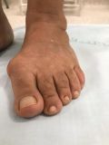No homem, onde a deformidade é menos comum (18x) e os sintomas se exacerbam devido a áreas de maior pressão e sobrecarga dos dedos dentro dos calçados