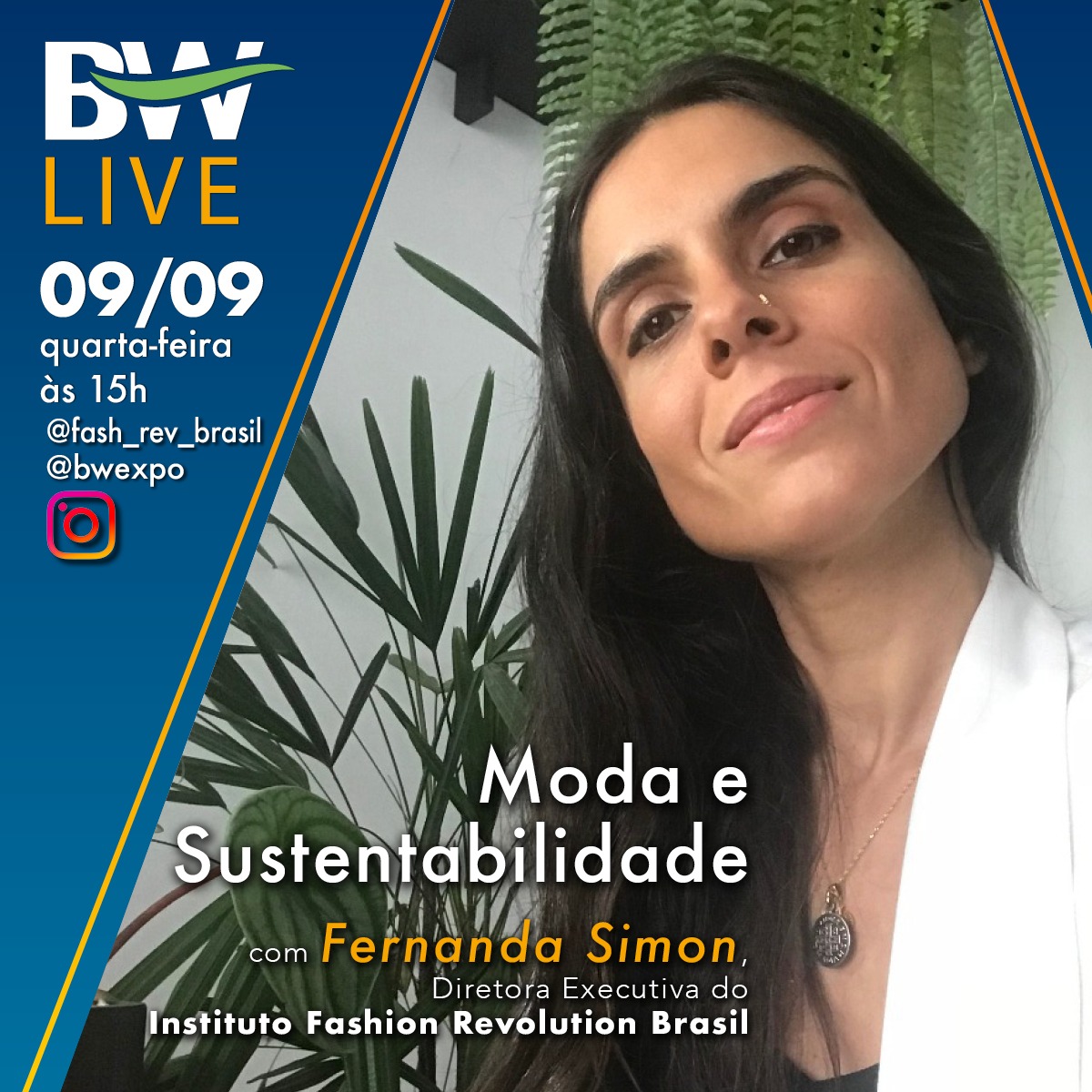 A BW LIVE será transmitida a partir das 15h00 pelo perfil @bwexpo no Instagram. Vagner Barbosa, integrante do comitê organizador da BW Expo, Summit e Digital 2020, conduzirá o papo com Fernanda, que é ativista e acredita que a moda é um importante agente de transformação.