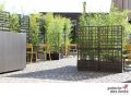 Esta solução inteligente possui ganchos especiais que permite criar divisórias em diferentes formas, lineares, curvadas e até mesmo fechadas. Além disso, é desenvolvido em plástico reciclável, com plantador de auto irrigação, ou seja, é equipado com um tanque de 8 litros: a água, inserida do orifício no topo, flui para o dispenser e um flutuador especial sinaliza seu nível. Desta forma, o ambiente se torna muito mais elegante com plantas vivas sem a preocupação de regá-las a todo momento. É fácil de limpar, montar e remover. Disponível em tons de marrom, com acabamento fosco.