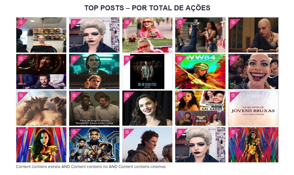 Ainda em social, posts que mencionavam as palavras “estreia nos cinemas” geraram mais de 1,1 milhão de ações em engajamento de outubro a dezembro de 2020, tanto no Facebook quanto no Instagram.