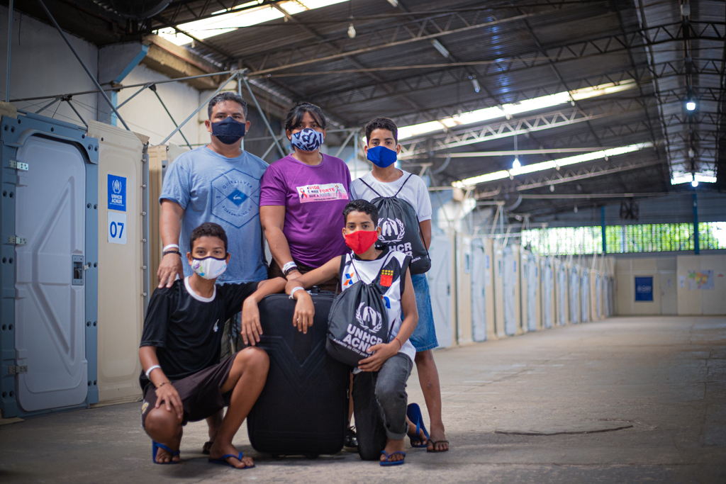 A família de Yohana Andreina, 40 anos e Arquimedes Ojeda, 42, embarcou para Sorriso (MT). Grupo pernoitou no Alojamento de Trânsito de Manaus antes de seguir viagem de avião - Foto: © ACNUR /Felipe Irnaldo