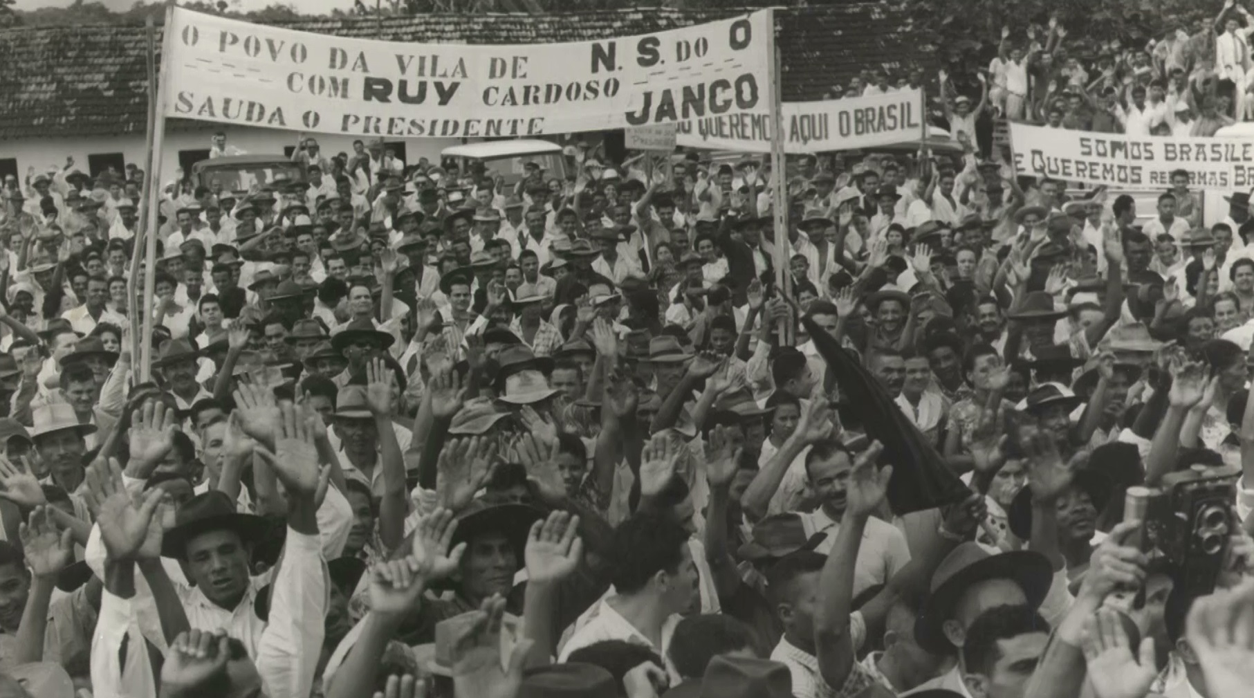 Apoiadores de João Goulart, presidente deposto pela ditadura militar, em cena de