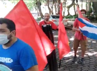 Militantes do MBL (Movimento Brasil Livre) e do PCO (Partido da Causa Operária) se confrontaram na manhã desta terça-feira (1) em frente ao Consulado da Rússia no Rio de Janeiro.