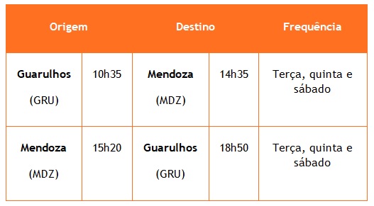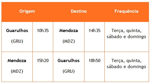 aeroporto de Guarulhos em três frequências semanais de ida e volta,