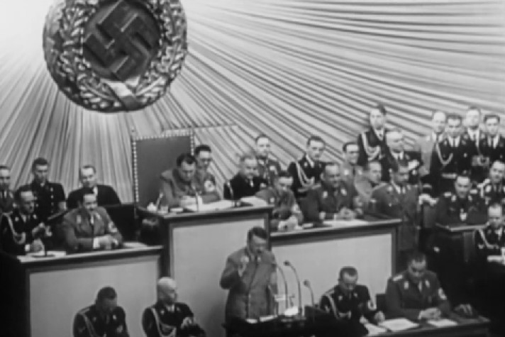 Hitler em discurso antissemita no Reichstag (Crédito: Divulgação / Curta!)“Da Emancipação ao Holocausto”, terceiro episódio da série “Antissemitismo: 2000 Anos de História”, começa na segunda metade do século XIX. Uma nova classe operária emergia e, com ela, nascia um novo mito: o do judeu rico e capitalista, que explorava trabalhadores. Porém, em paralelo, avanços aconteciam aos poucos, e os judeus finalmente podiam ser cidadãos, usufruindo dos mesmos direitos dos cristãos na Europa Ocidental. Mas essa “emancipação” não duraria muito.