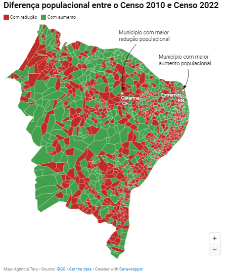 município, entre dois censos demográficos consecutivos, em relação à