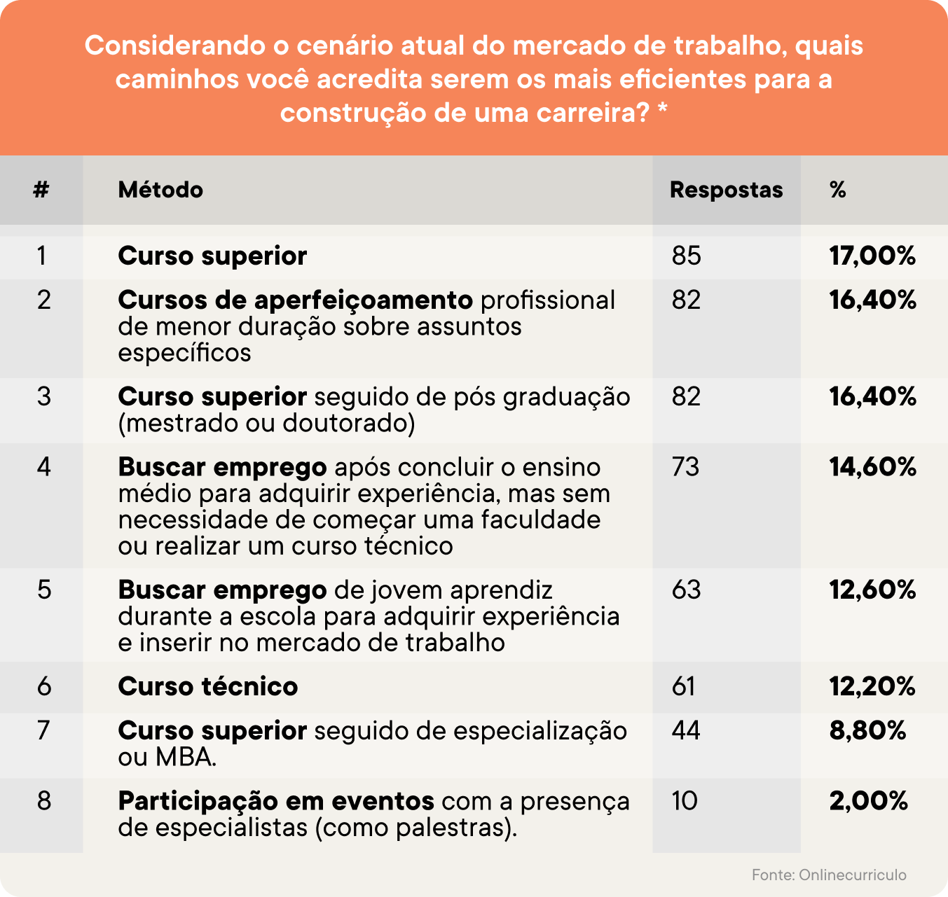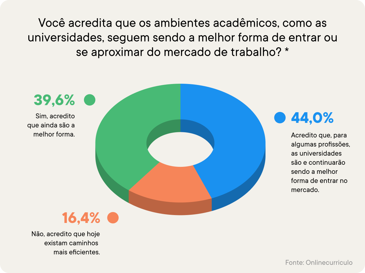 procurou entender se os caminhos habituais de construção de carreira e inserção no mercado de trabalho seguem sendo os preferidos.