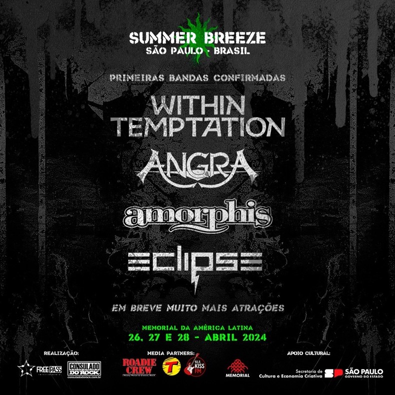 Considerando o estrondoso sucesso da primeira edição no Brasil do festival alemão Summer Breeze Open Air, realizado em 2023 no Memorial da América Latina (São Paulo/SP), a segunda edição segue confirmadíssima para os dias 26, 27 e 28 de abril do próximo ano e algumas atrações já foram anunciadas. Neste sábado, dia 19 de agosto, durante coletiva de imprensa da edição alemã, os organizadores brasileiros anunciaram as primeiras atrações que vão compor o line-up do festival em 2024.