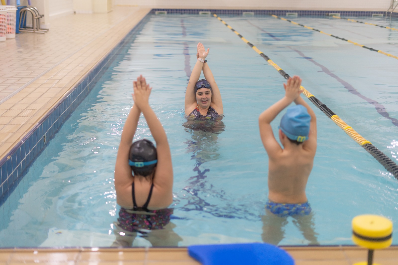 numa piscina com orientação profissional adequada, as crianças estão