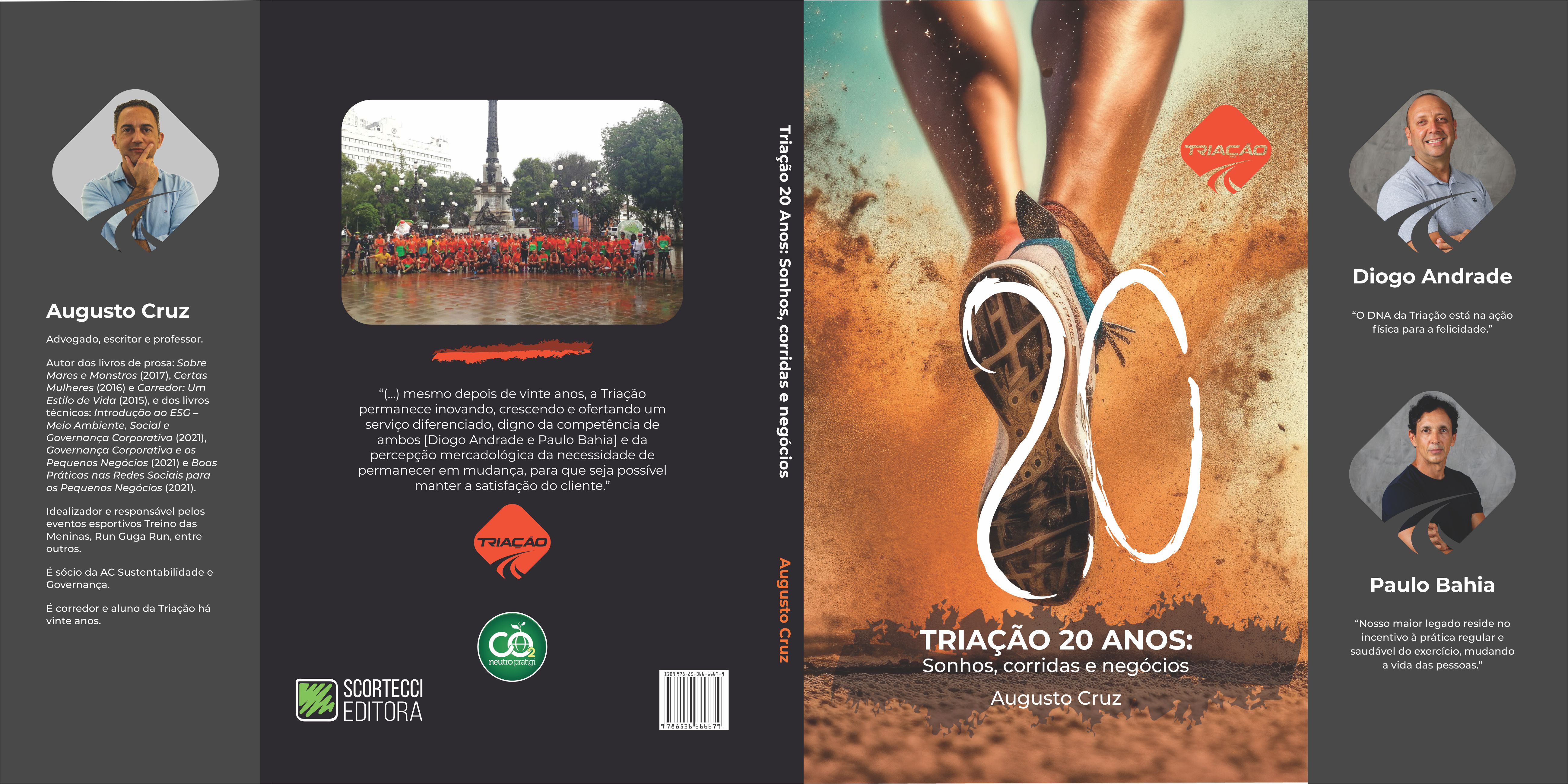 Triação 20 Anos: Sonhos, corridas e negócios. Este é o novo livro do escritor, advogado, professor e corredor, Augusto Cruz, que conta a história dos 20 anos da Triação Assessoria Esportiva,
