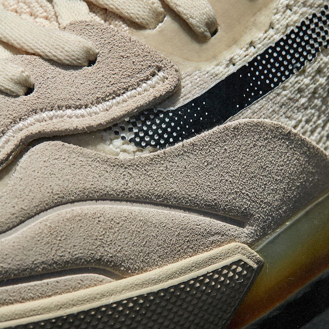 destaque do design começa no cabedal em malha e knit tecnológico, com a