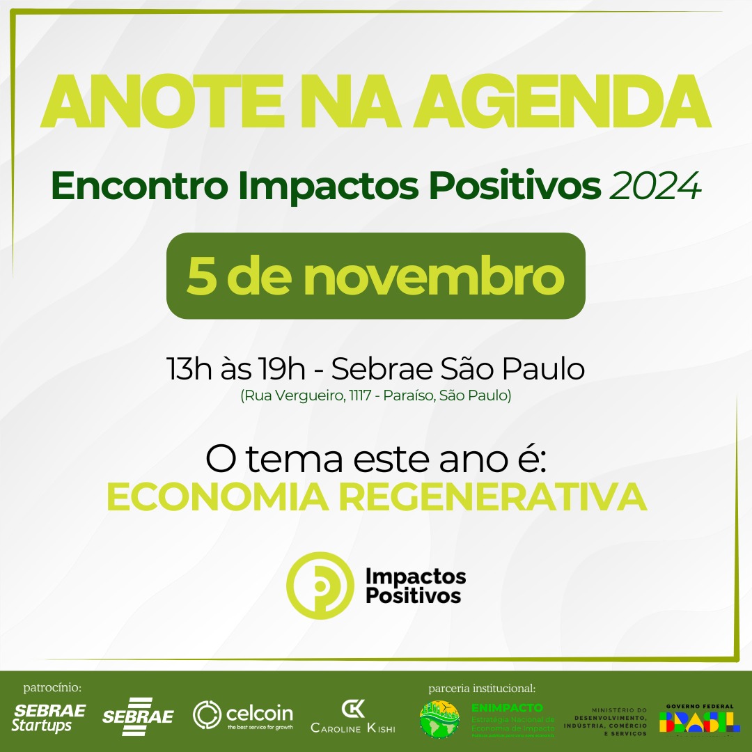 Para mais informações sobre painéis, workshops, horários, ingressos e palestrantes, acesse Sympla - Encontro Impactos Positivos 2024.
