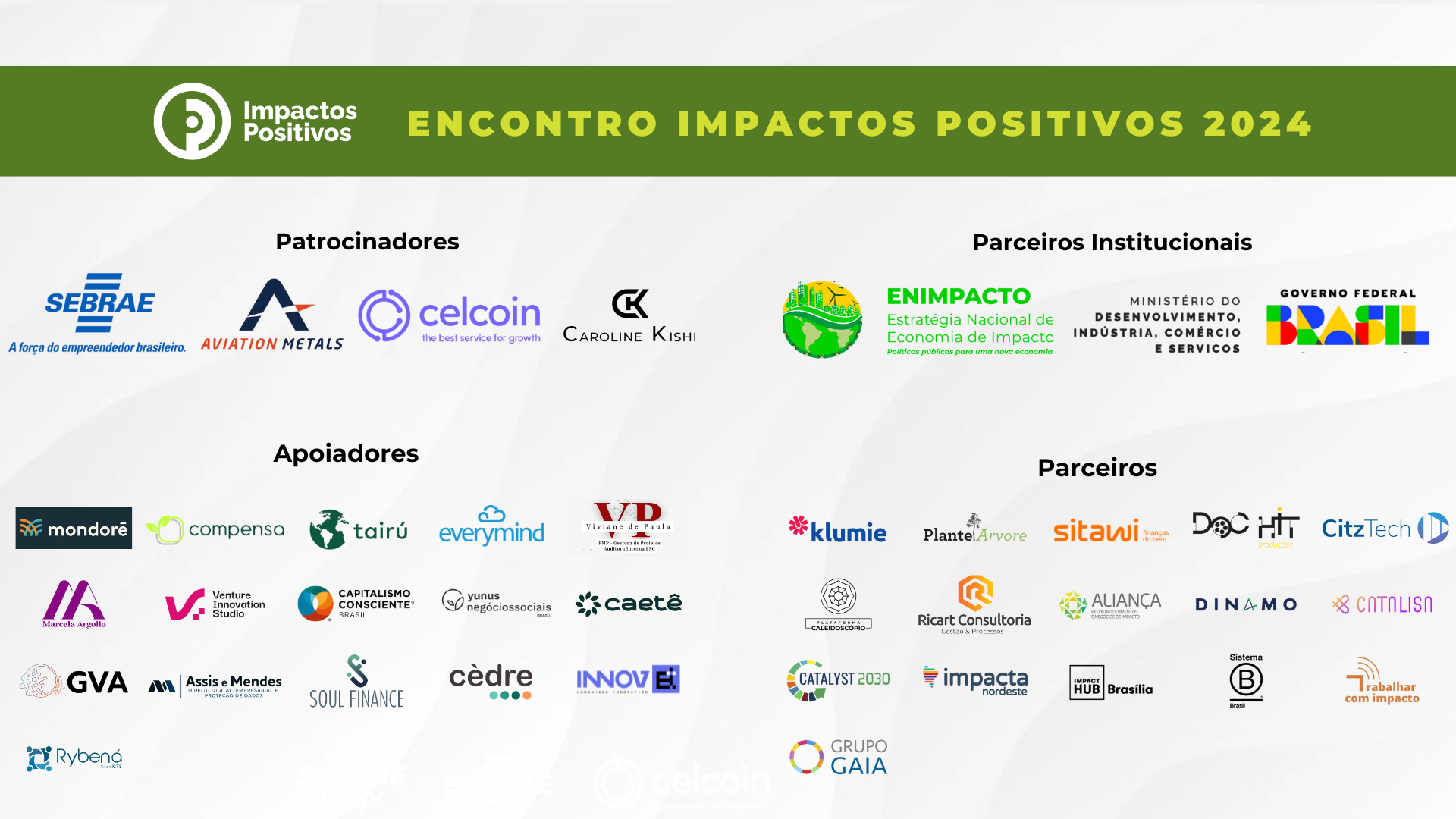 Não perca a oportunidade de fazer parte deste importante encontro que celebra e impulsiona os negócios de impacto no Brasil!