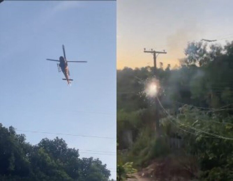 Helicóptero da Polícia Civil atinge fios elétricos e causa explosões em meio a tiroteio na Baixada