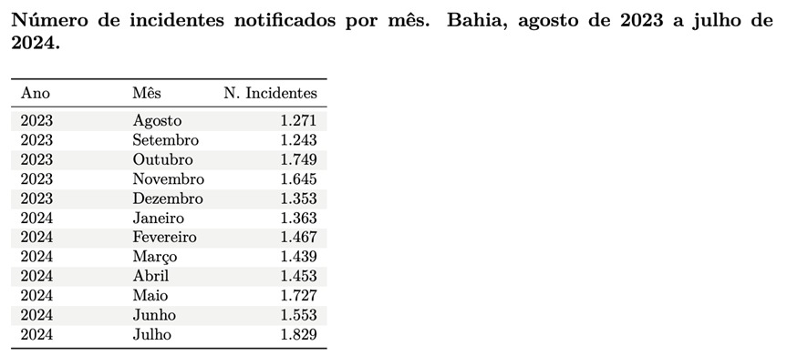 Bahia, foram notificados 18.092 incidentes. As falhas por lesão por
