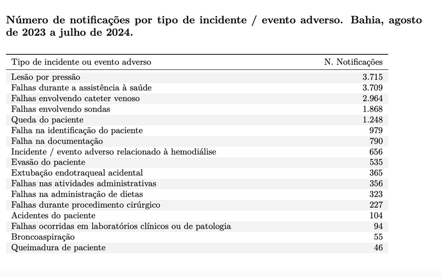 Seguem dados da ANVISA (Bahia)- https://www.gov.br/anvisa/pt-br/centraisdeconteudo/publicacoes/servicosdesaude/relatorios-de-notificacao-dos-estados/eventos-adversos/2024/bahia/view