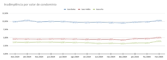 em março. Os dados são do Índice de Inadimplência Condominial da Superlógica, principal plataforma de soluções tecnológicas e financeiras para os mercados condominial e imobiliário no país.