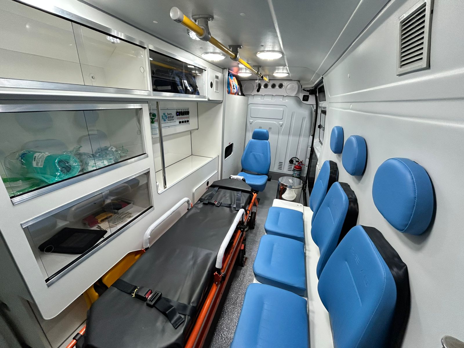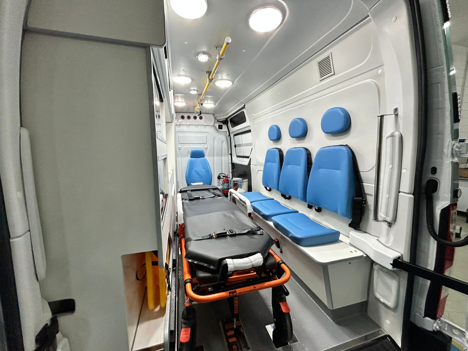 dentro, a Renault Master foi equipada com compartimento do paciente com