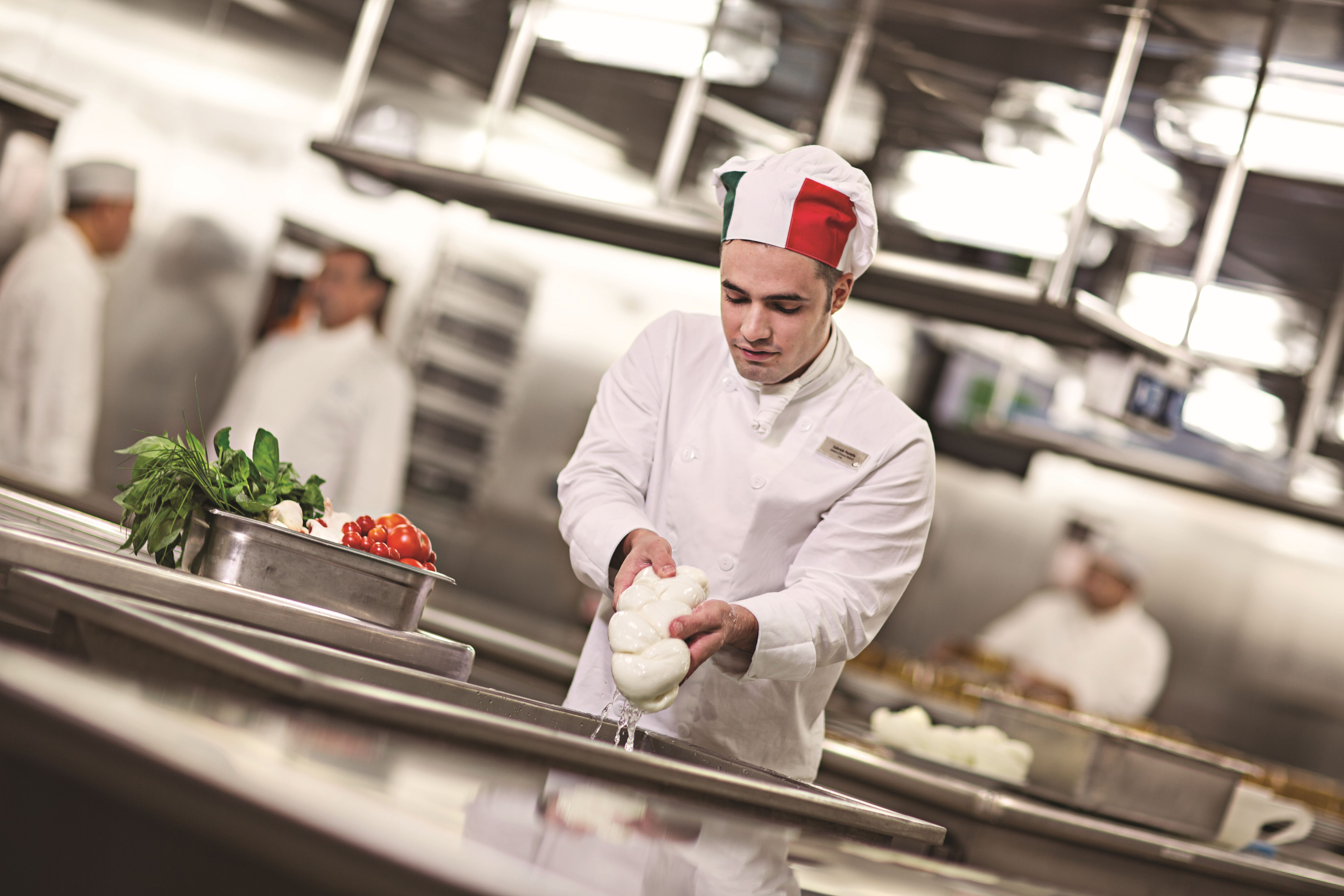 Nos navios Costa, é possível celebrar a cultura italiana em cada detalhe: a gastronomia e o entretenimento transportam os hóspedes para a Itália. Fotos: Divulgação