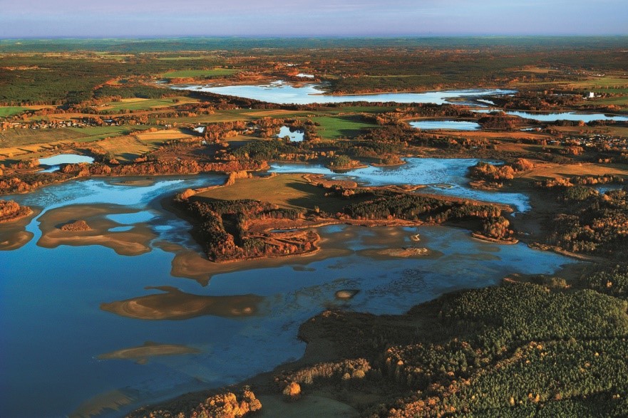 problemas provocados por enchentes. Krčín criou vários lagos ao redor da