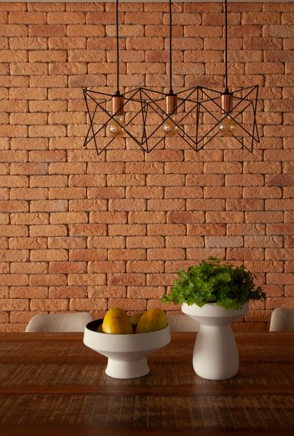 rústica, argila e cerâmica artesanal que encontram equilíbrio ao lado