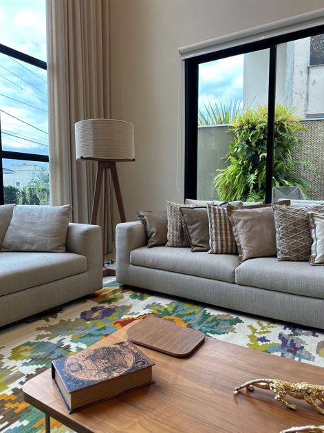 almofadas complementam a paleta de tons terrosos | Projeto Dantas & Passos Arquitetura | Foto: Maura Mello | As arquitetas Danielle Dantas e Paula Passos destacam que esse ano tem uma proposta muito especial. “Como