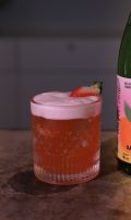 Macere os morangos com o xarope de açúcar em uma coqueteleira. Adicione gelo, o Sake, o suco de limão taiti e a clara de ovo. Agite bem e sirva coado em copo baixo com gelo. Finalize com uma fatia de morango.