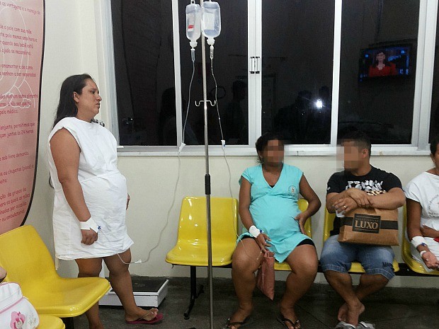 Grávida espera por leito em pé, em maternida de Manaus (Foto: Marcela Nogueira/Arquivo Pessoal)
