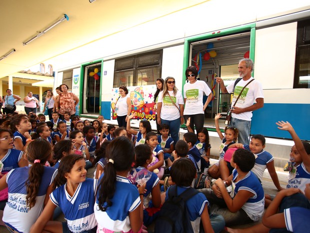 Pela janela do VLT os estudantes observaram a Lagoa Mundaú (Foto: Jonathan Lins/G1)