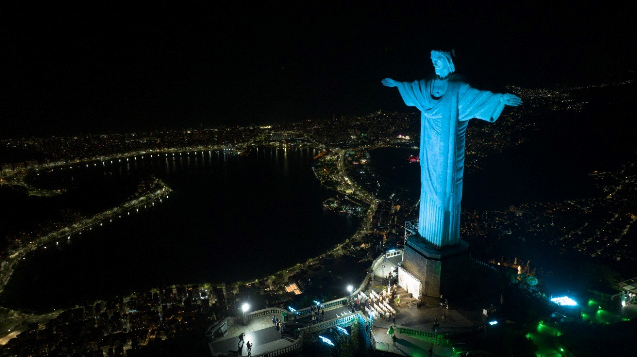Cristo Redentor, foram iluminados no tom azul claro, cor que identifica