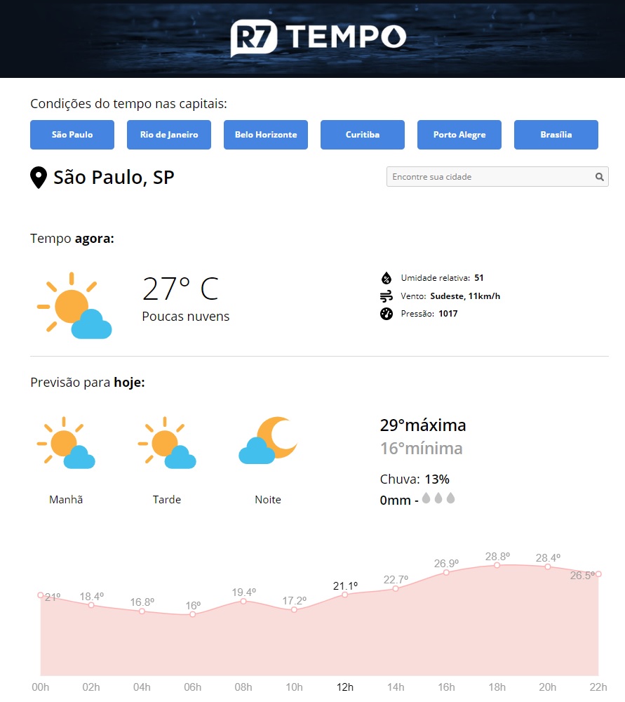parceria com o Climatempo, o novo vertical disponibiliza a temperatura
