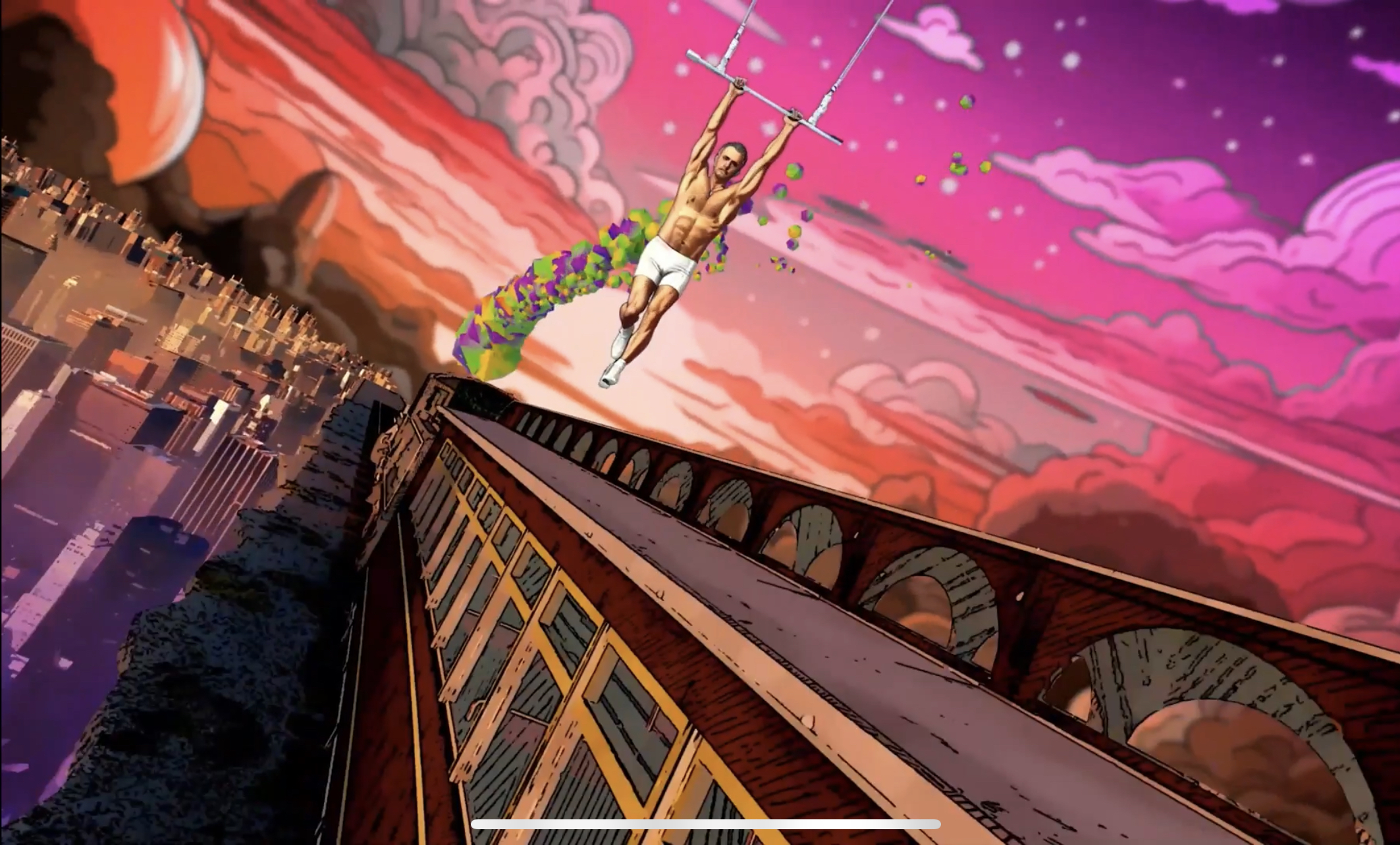 acrobacias aéreas, projeções com inteligência artificial, interação em