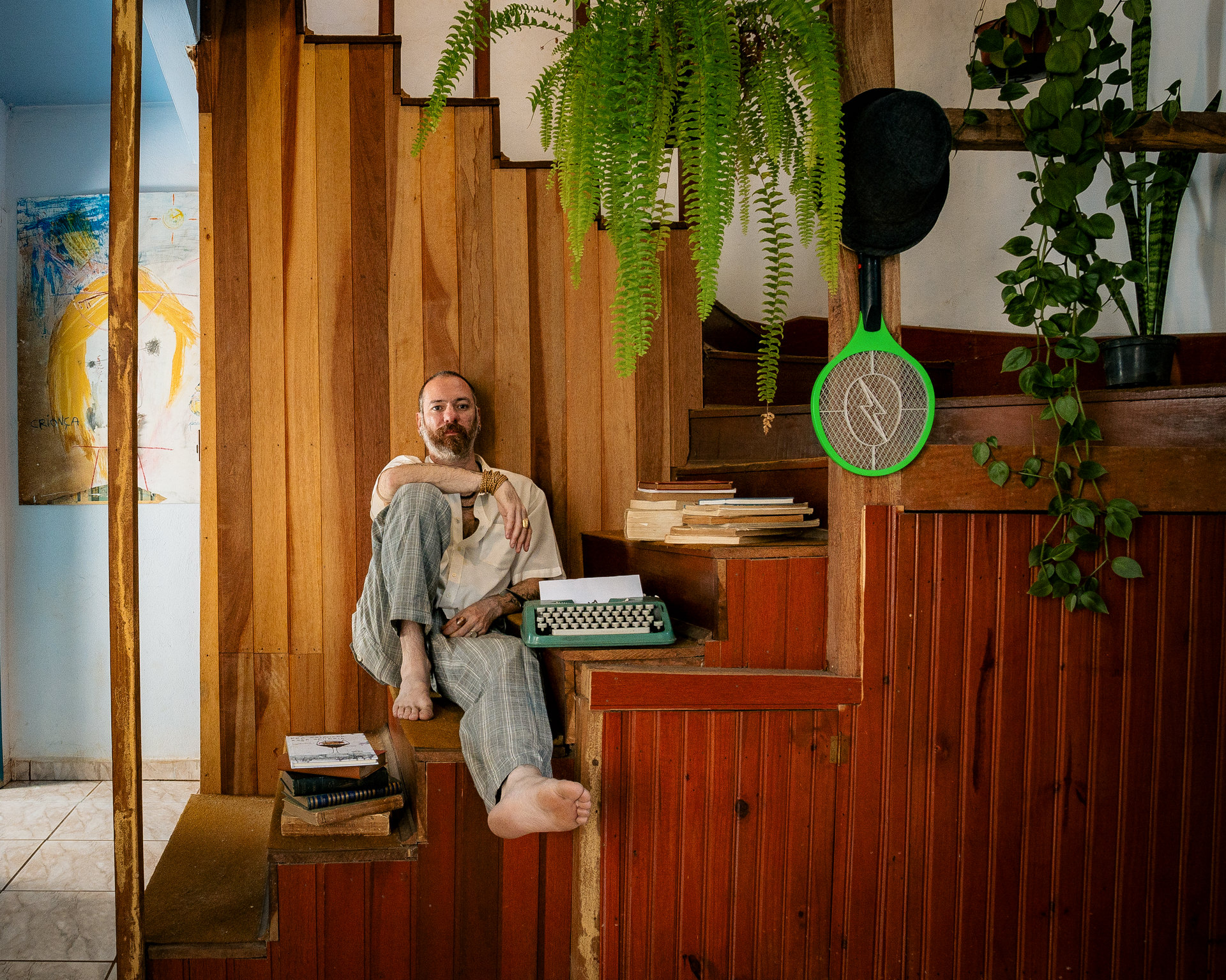 "mas amar inclui sentir / a passagem do tempo / pois escrever poemas é lapidar a linguagem / até fazer as palavras brilharem" (pág. 267) Artista nato, além de pai e poeta, Baga Defente (@bagadefente) é fundador do NADA∴Studio Criativo, um ateliê multimídia, produtora cultural e editora independente com sede em Botucatu, no interior de São Paulo. Após publicar ‘Pra estancar essa sangria’ em 2021, via Lei Aldir Blanc, livro que reúne seus três primeiros lançamentos artesanais, o autor apresenta “Teu sangue vermelho na minha parede” (416 pág.), obra contemplada pelo edital ProAC/SP de 2022. Por meio de uma escrita informal, pessoal e ensaística, seu primeiro romance — ou, como ele prefere chamar, “metarromance epistolar” — é ambicioso. Trata-se de uma mistura de (auto)ficção e não-ficção, com elementos autobiográficos, culturais e literários, todos em meio a anotações de um homem comum que, em tom irônico e crítico, realiza reflexões sobre política, os impactos e transformações causados pela pandemia, relacionamentos, paternidade, memória e ocultismo. A brutal e quase incômoda honestidade da obra a transcende, oferecendo aos leitores a oportunidade de se conectar com suas próprias jornadas interiores na busca pela pedra filosofal da expressão pessoal. O personagem principal, Lêonidas, é um homem branco, hétero e de classe média que se encontra devastado após o fim de um relacionamento e o afastamento gradual de sua ex-namorada. A ausência de Lucy Lake faz ruir toda vida a sua volta, fazendo com que ele não vislumbre qualquer possibilidade para seu futuro sem a companheira. Os traumas e paranóia são inflamados pela solidão coletiva provocada pela pandemia da Covid-19. Paradoxalmente, Leônidas encontra dificuldades e alívio no exercício da sua paternidade enquanto tenta se recompor e encontrar seu novo lugar no mundo. “Comecei essas anotações no intuito de falar um pouco sobre meus sentimentos nessa bizarra situação de isolamento social, de como isso vem afetando nossas emoções, como estou me sentindo trancafiado dentro de casa e com medo de contato humano”, narra Leônidas. Suas observações envolvem dias enclausurados em razão da crise sanitária, tentativas de desviar o foco de Lucy Lake com outras mulheres e a busca pelo reencontro consigo. O livro é dividido em três partes distintas (denominadas como Nigredo, Albedo e Rubedo, principais etapas do processo alquímico). Em primeira e terceira pessoa, a história investiga o que move esse personagem e do que é composto esse limbo no qual se encontra. Além de mudanças na voz narrativa, o escritor também alterna foco, tempo e modo narrativo. Além das convenções de gênero literário: bebendo da fonte do norueguês Karl Ove Knausgård Baga usa uma narrativa híbrida e processual, uma espécie de autogeografia em diálogo com outros autores, desafiando as convenções do gênero. Poemas, cartas, rascunhos, diários, transcrições de chats e sessões de regressão compõem a narrativa que explora as complexas emoções e pensamentos de seu protagonista. Relatos de sonhos e postagens em redes sociais também são transcritas com linguagens características a cada tipo de nota. O livro, vivo, se transforma e sua formatação o acompanha. Desde o projeto gráfico, também elaborado pelo autor, a obra é influenciada pela alquimia. Pelas possibilidades de absorção e transformação proporcionadas pela leitura, pelas referências acumuladas do escritor que através de seu filtro se transformam em algo novo para seguir em fluxo quando novas pessoas tiverem contato com o livro. O autor cita o norueguês Karl Ove Knausgård (que também é referenciado no livro) quando este disse em entrevista à Folha de São Paulo que escrevia sua autobiografia e se via surpreso quando outros lhe confessavam intimidade com sua história. E como o mesmo processo, de transformar experiências pessoais em algo literário, também resulta em um novo fruto. Para Alex Zani, editor e produtor editorial do livro, a influência do norueguês não se deu apenas no processo da escrita em si, mas também há um paralelo na relação escritor-editor, já que em ambas as obras o editor se torna um personagem e está de fato inserido no cotidiano do protagonista-autor-narrador. Baga também estabelece diálogo direto com outras obras e autores ao longo do livro, transitando entre reflexões sobre o ato da escrita e passagens que podem, a priori, aparentar um relato trivial, mas em contexto se revelam como uma densa investigação do humor e vida ao redor de Leônidas, cujas idiossincrasias são ostensivas. “Teu sangue vermelho na minha parede verde” é um convite para entender melhor o lugar de cada um no mundo. Ao despir-se de julgamentos, o leitor é capaz de se conectar com sua jornada interior, reconhecer situações familiares e tomar uma atitude tão difícil para nossas rotinas dinâmicas: parar para prestar atenção. | |