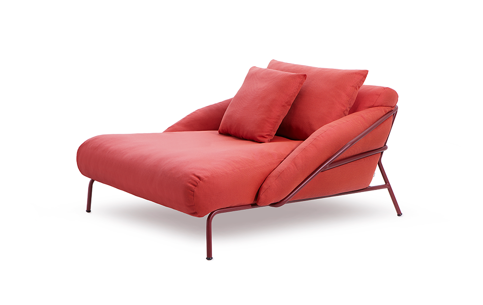 Nesta chaise fica explícita a função de cada linha do desenho de sua estrutura tubular. A estrutura circunda peça e desempenha a função de sustentar todos os pontos das almofadas de assento, encosto e braços. Essa configuração possibilita a utilização de almofadas soltas, sem a necessidade de serem estruturadas internamente, proporcionando um sentar reclinado e confortável.