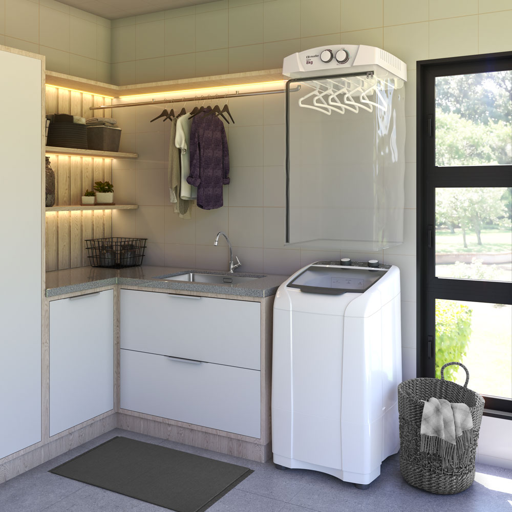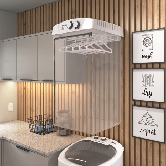 secagem e permite que você não acumule roupas sujas ou molhadas no