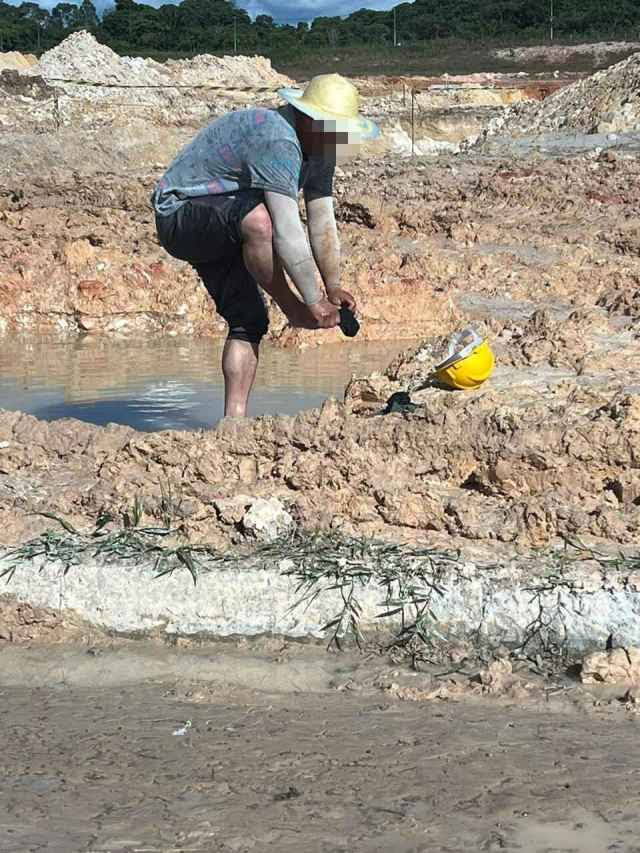 imagens, dá para ver operários bebendo água salobra das poças formadas
