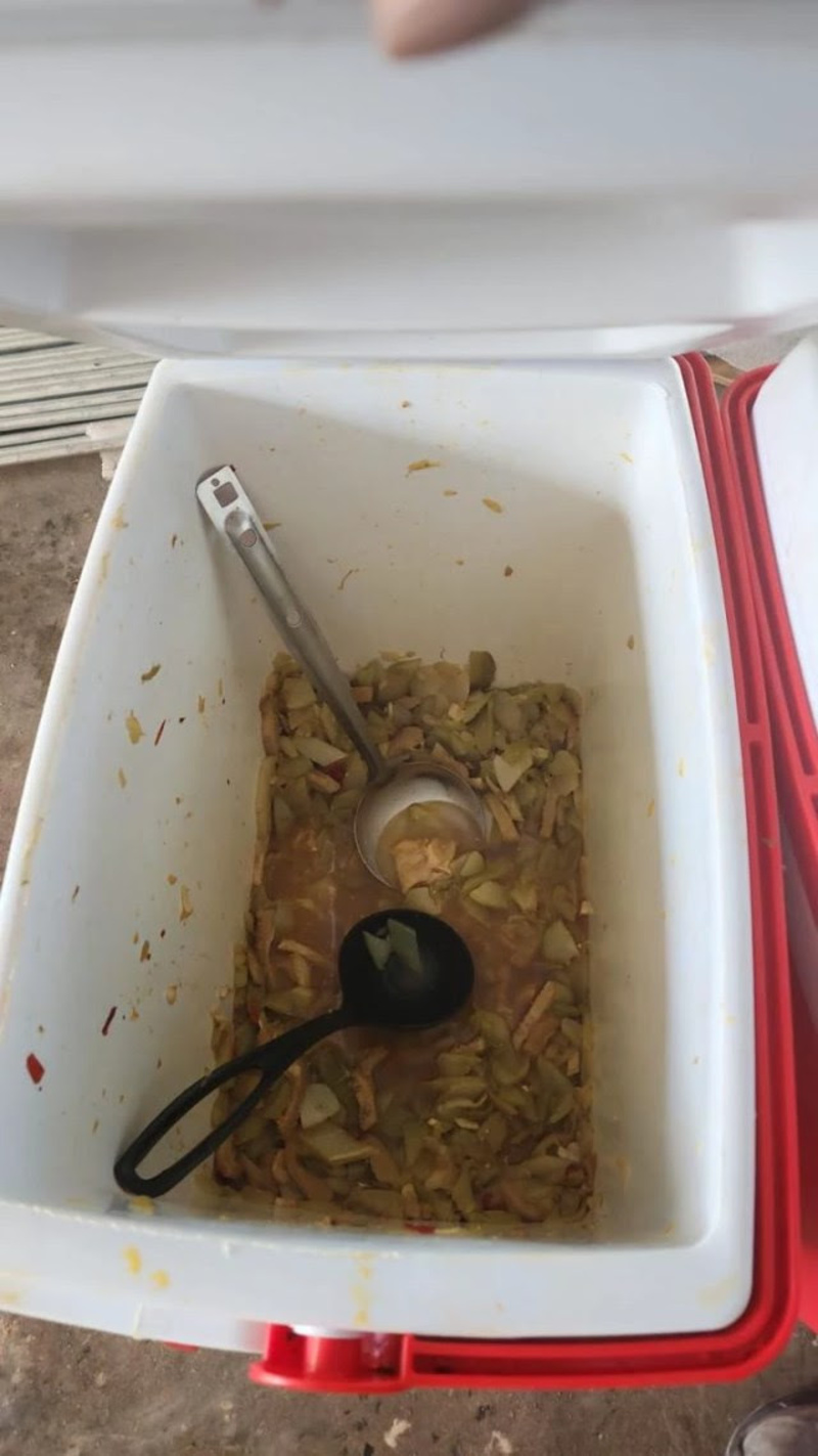 refrigerantes, é servida uma sopa para centenas de trabalhadores