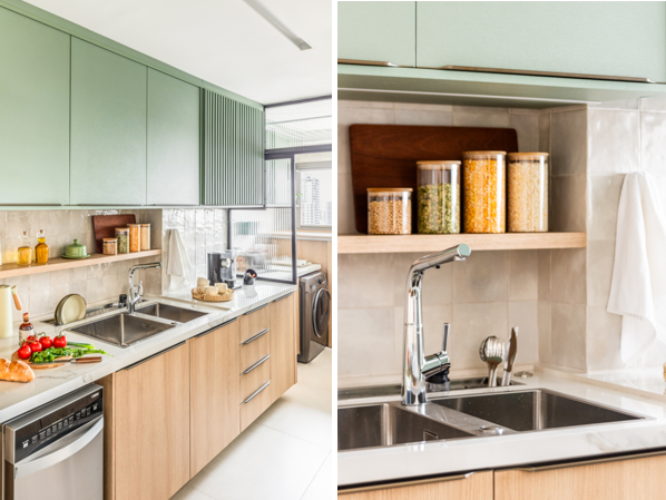 Conforme explica o Bruno Moraes, a escolha entre a colocação de uma ou duas cubas depende de variados fatores, mas geralmente a decisão acontece em função da organização e a forma de utilização da cozinha. “No projeto do meu apartamento, combinei a cuba dupla com o triturador de alimentos e a calha úmida para receber as louças e talheres”, compartilha. No geral, a presença de uma única cuba é suficiente nas cozinhas em que a simplicidade e economia de espaço são prioritárias. Por outro lado, os cômodos grandes e movimentados, especialmente em imóveis com família com muitos integrantes ou quando o morador gosta bastante de cozinhar, a dobradinha coopera na otimização do fluxo de trabalho. Atenção aos materiais! | |